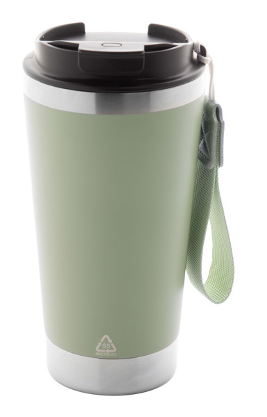 Kούπα από ανακυκλωμένο ανοξείδωτο ατσάλι, με διπλό τοίχωμα και ματ χρώμα χωρητικότητας 600 ml. Περιλαμβάνει καπάκι κουμπώματος, διανομέα που ανοίγει εύκολα και άκαμπτη λαβή για ευκολία. Είναι ιδανικό για το γραφείο, το τραπέζι ή οποιαδήποτε επιφάνεια όπου μπορείτε να απολαύσετε το αγαπημένο σας ποτό. Με λογότυπο Recycled Stainless Steel.