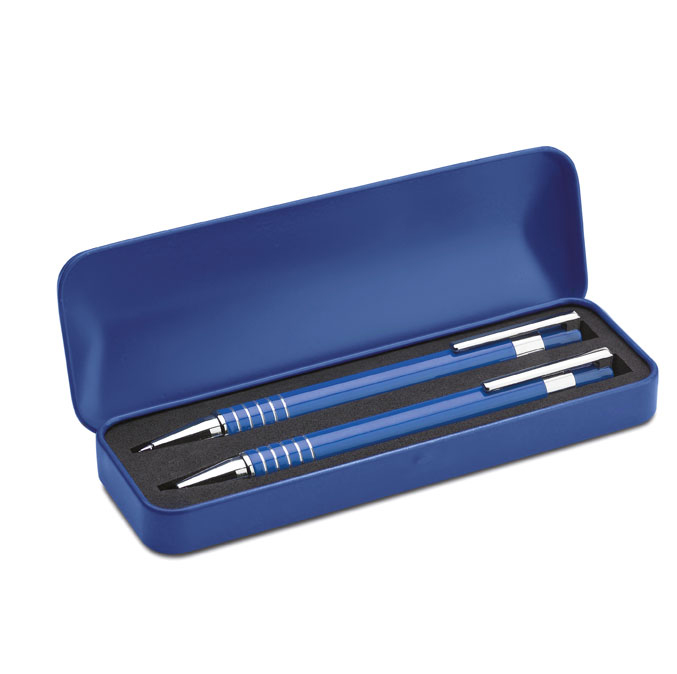 Μεταλλικό στυλό και μηχανικό μολύβι σε μεταλλική θήκη.