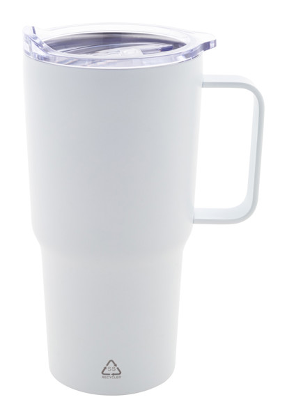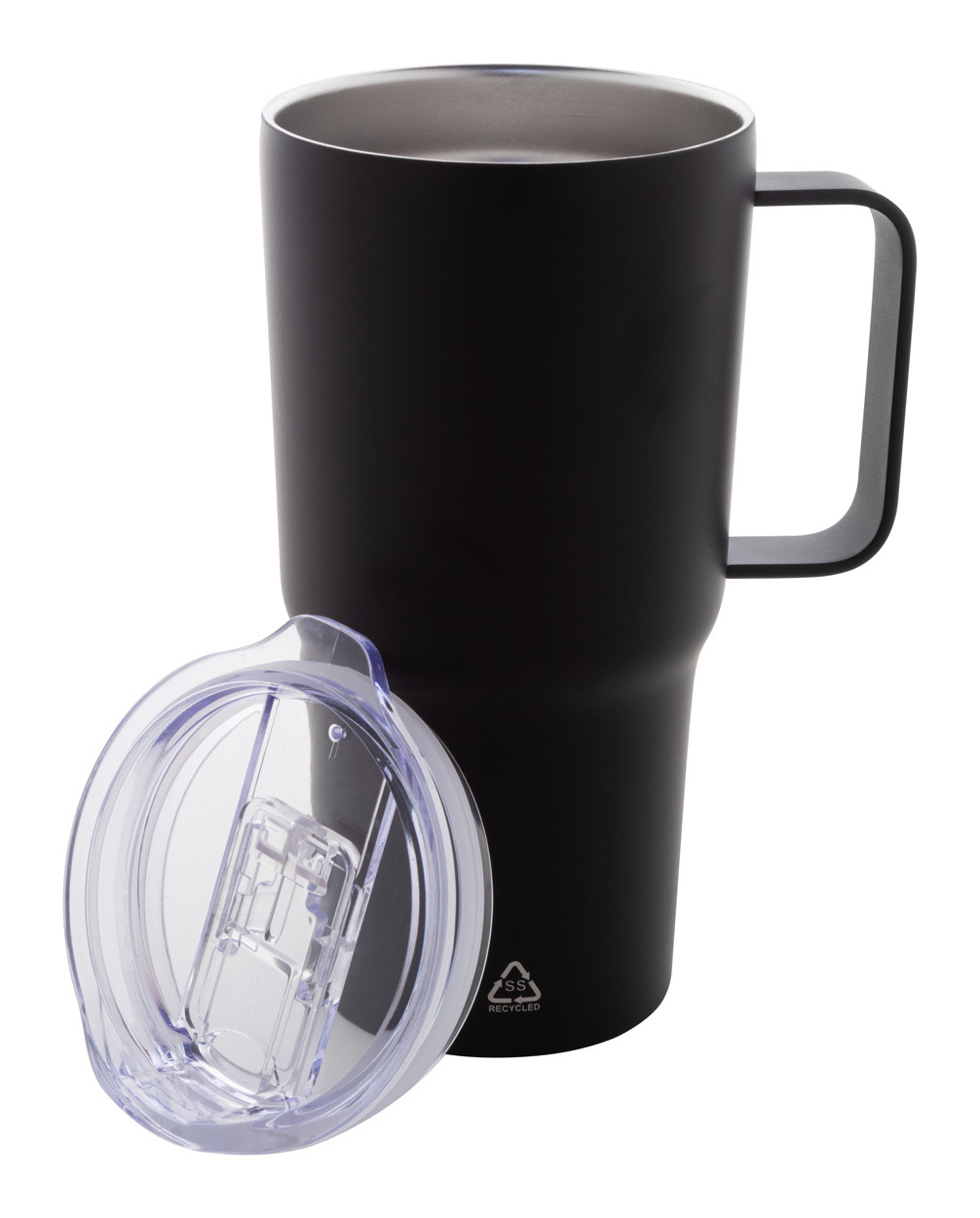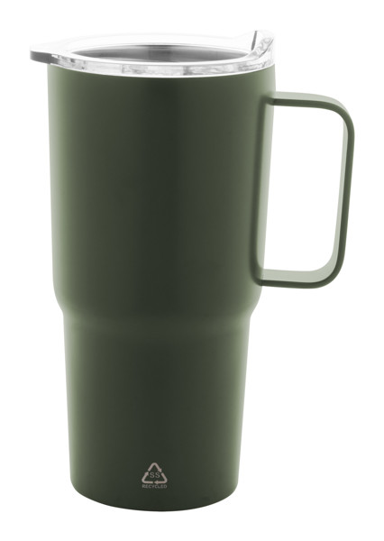 Ανακυκλωμένο ανοξείδωτο ατσάλι διπλού τοιχώματος (90% ανακυκλωμένο ανοξείδωτο ατσάλι και 10% ανοξείδωτο ατσάλι) ποτήρι με καπάκι . Χωρητικότητα: 600 ml.