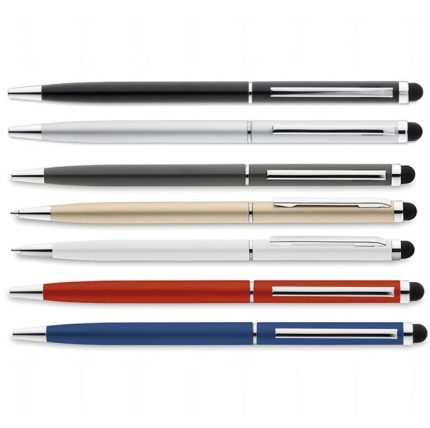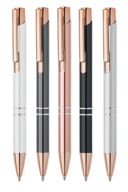 Στυλό αλουμινίου με button και ασημί λεπτομέρειες.