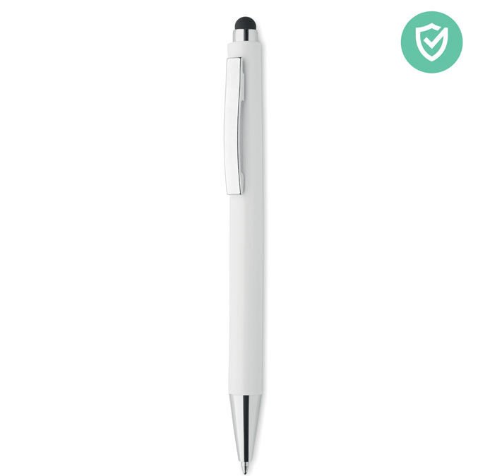 Πλαστικό στυλό με αντιβακτηριακο άσπρο σώμα και touch screen.
