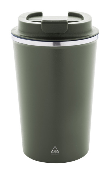Ανακυκλωμένο ανοξείδωτο ατσάλι διπλού τοιχώματος (90% ανακυκλωμένο ανοξείδωτο ατσάλι και 10% ανοξείδωτο ατσάλι) ποτήρι με καπάκι με εσωτερικό καλαμάκι, πτυσσόμενο επιστόμιο και άμεσο άνοιγμα πόσης. Χωρητικότητα 850 ml.