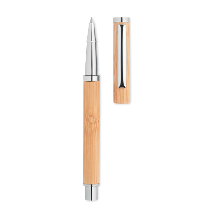 Στυλό gel απο bambu ξύλο με μεταλλικές λεπτομέρειες .