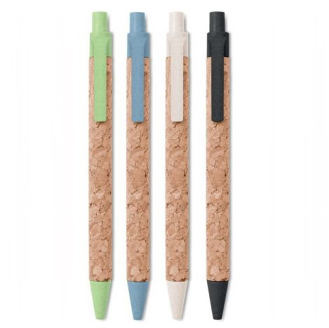 Στυλό απο χαρτί και φελλό με χρωματιστές λεπτομέρειες .