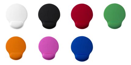 Mouse pad made of soft polyester. With non-slip silicone base and padded wrist cushion to prevent stress and pain. Available in a wide range of colours.