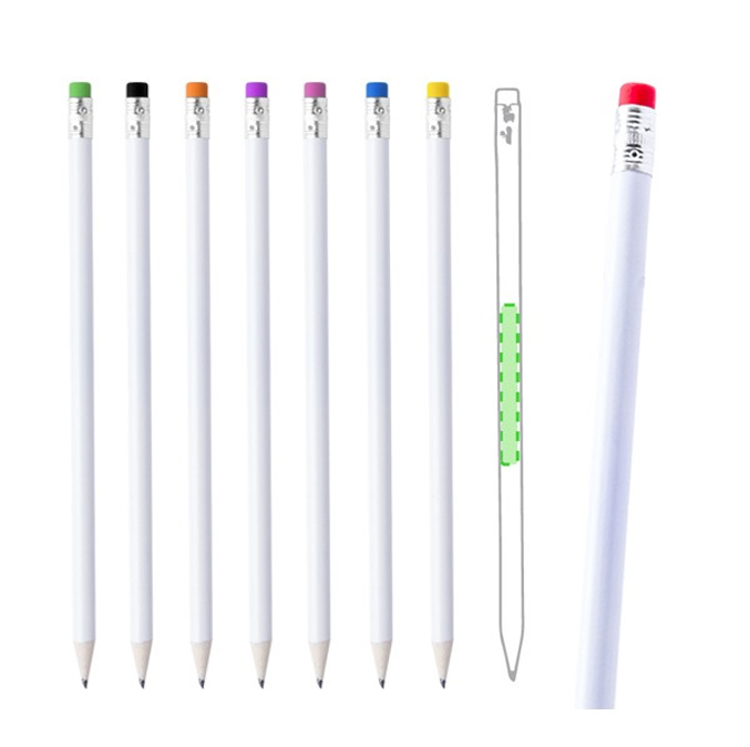 Μολύβια ξύλινα σε άσπρο χρώμα και χρωματιστή γόμα.