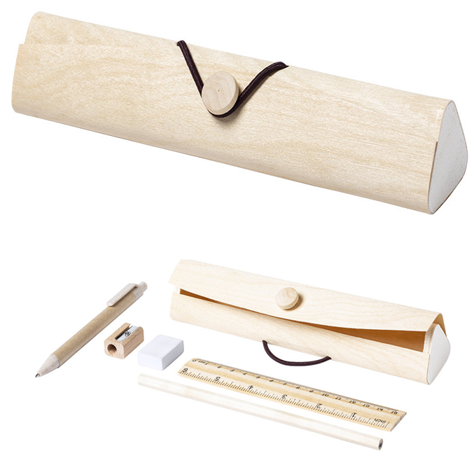Θήκη απο πάπυρο με χάρακα, στυλό χάρτινο, γόμα,ξύστρα και μολύβι.