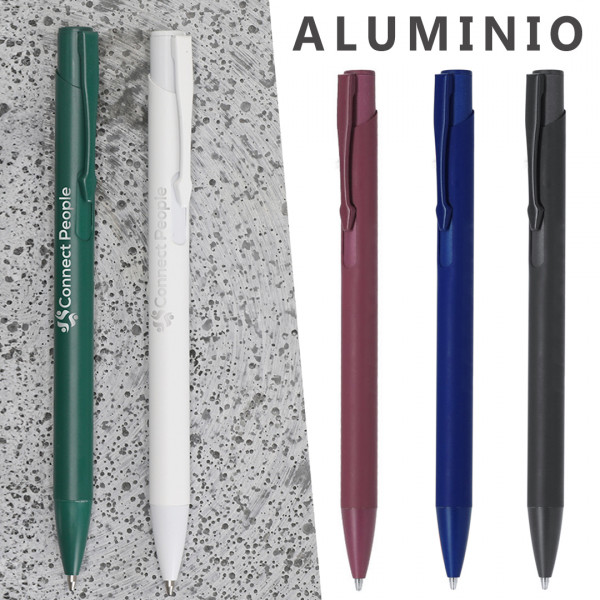 Κομψό στυλό από αλουμίνιο με μηχανισμό κουμπιού. Ανθεκτική κάννη και κλιπ αλουμινίου με ματ φινίρισμα, με κασέτα jumbo και μπλε μελάνι. Ειδική χάραξη με λέιζερ.