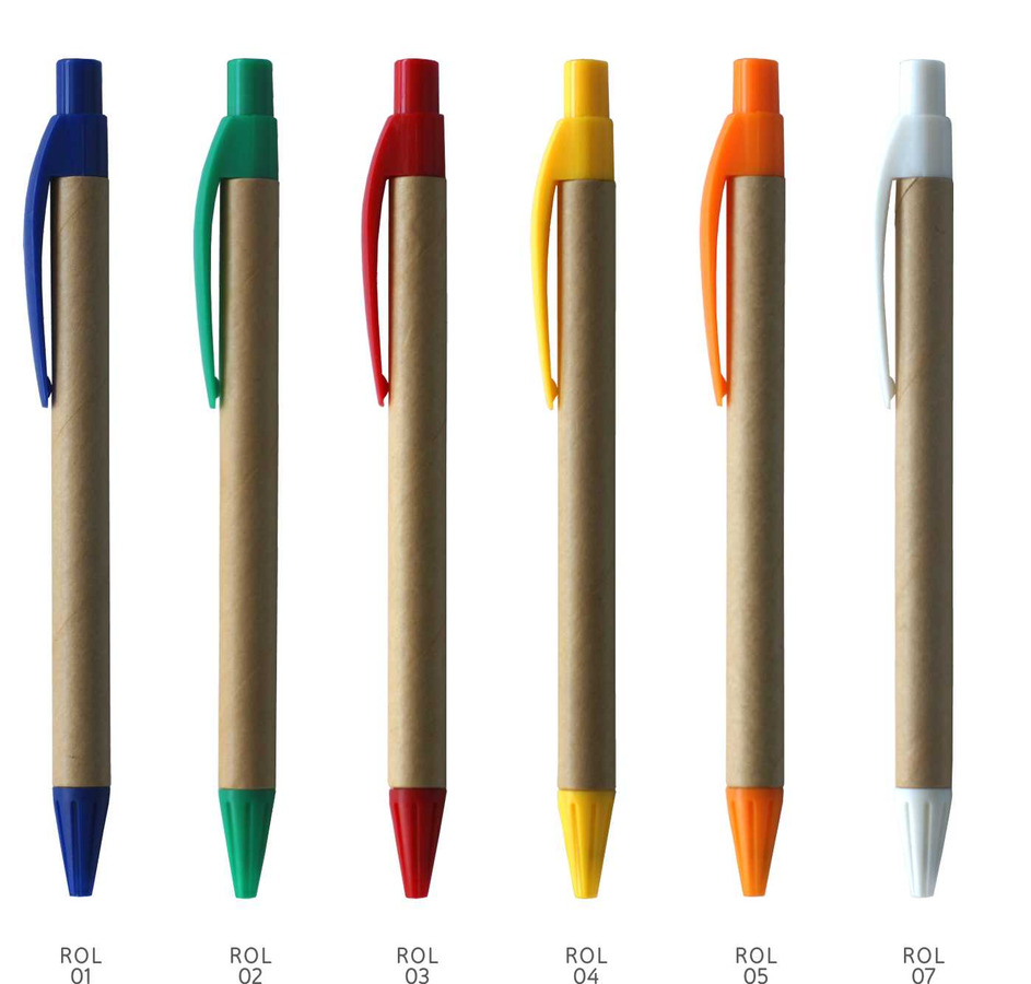Στυλό απο ανακυκλωμένο χαρτί με χρωματιστές λεπτομέριες.