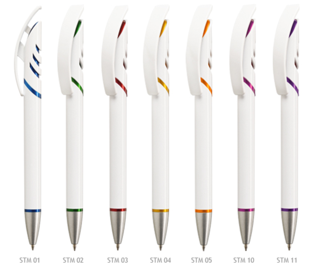 Πλαστικό στυλό με άσπρο σώμα , χρωματιστές λεπτομέρειες.