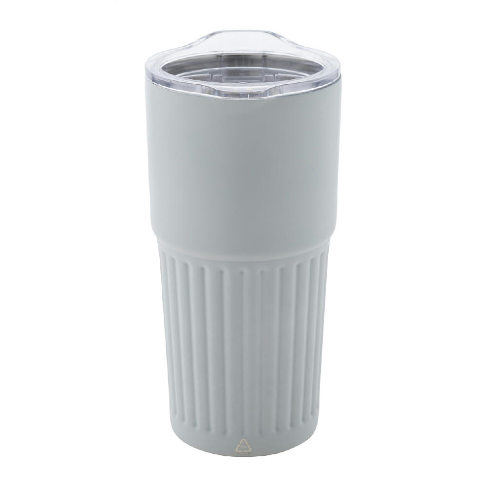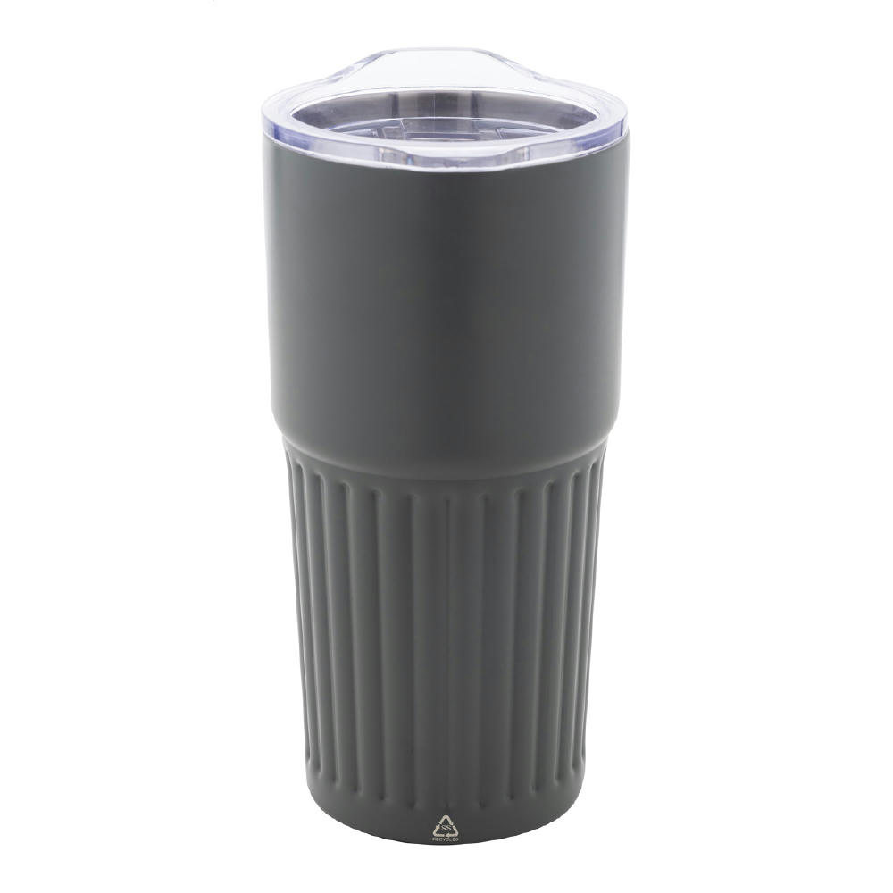 Ανακυκλωμένο ανοξείδωτο ατσάλι διπλού τοιχώματος (90% ανακυκλωμένο ανοξείδωτο ατσάλι και 10% ανοξείδωτο ατσάλι) ποτήρι με καπάκι με εσωτερικό καλαμάκι, πτυσσόμενο επιστόμιο και άμεσο άνοιγμα πόσης. Χωρητικότητα 850 ml.