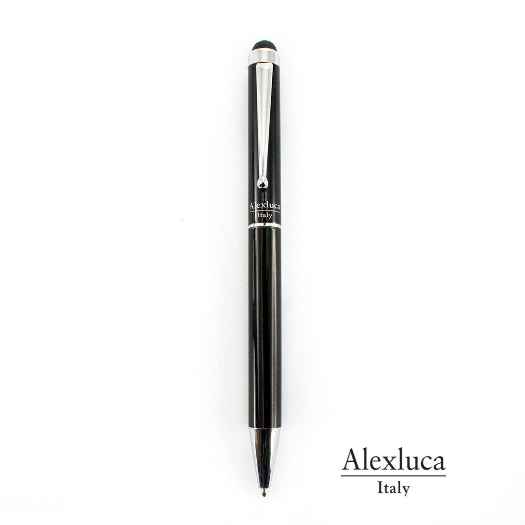 Alexluca ball pen με μηχανισμό περιστροφής και λείο μεταλλικό σώμα σε κομψό μαύρο χρώμα.